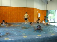Am Montag, Dienstag und Mittwoch machten wir uns mit 17 Kindern auf den Weg zum Ostbad. Hier sollten die Kinder drei Tage lang eine Intensivförderung für Nichtschwimmer erhalten. Wir machten spielerische Übungen im Wasser und übten die Schwimmbewegung sowie das Tauchen. Alle Kinder haben mit großem Spaß gute Fortschritte gemacht. Zwei haben sogar das "Seepferdchen" erworben!