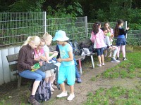 Die Klasse 4a unternahm einen ganztägigen Ausflug in den Duisburger Zoo. Wir beobachteten Affen, Löwen, Bären, Seelöwen, Giraffen und viele andere exotische Tiere. Der Höhepunkt des Tages war die Delfinvorführung. Die Delfine warfen Bälle ins Publikum und sprangen über hoch gespannte Seile. Auf den beiden wunderschön gestalteten Spielplätzen des Zoos konnten sich alle Kinder austoben. Vielen Dank an die Firma RWE. Frau Wilkes hatte dort an einem Preisausschreiben teilgenommen und Freikarten für die ganze Klasse gewonnen.