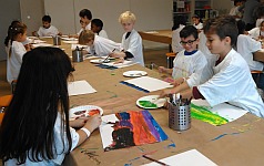 experimentierten die Kinder im Werkraum mit Schwämmen