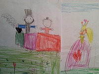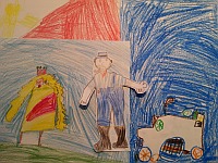 Alle Kinder waren begeistert von den Schauspielern, der Kulisse und den schönen Kostümen. Die Klasse 1b hat im Unterricht dazu Bilder gemalt.