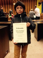 Tetsu Guadagni aus der Klasse 3b hat beim Essener Mathematikwettbewerb für Grundschulkinder einen zweiten Platz belegt.