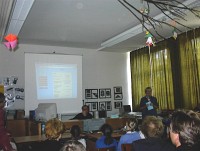 Marlies Wilkes stellt am 24. Mai 2000 im Rahmen einer Projektwoche die neue Homepage der Schulgemeinde vor. Damit ist unsere Schule eine der ersten Essener Schulen, die sich im Internet präsentierten.