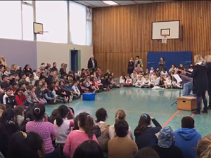 In der Schule an der Heinickestraße ist es zur guten Tradition geworden, sich dreimal im Jahr mit der gesamten Schulgemeinde in der Turnhalle zum gemeinsamen Schulsingen zu treffen. Am 9.7.2019 war es wieder soweit, dass wir uns kurz vor der Sommerferien in der Turnhalle zum Schulsingen getroffen haben. Alle Klassen haben ihre Lieblingslieder aus unserem Schulrepertoire gemeinsam gesungen. Geleitet hat das Singen unsere Chorleiterin Marina Karrie, am Piano wurden die Kinder von Anna Kortmann begleitet. Das Besondere an diesem Schulsingen war, dass zwischen den Liedern die Kinder unserer Blockflötengruppe kleine Stücke vorgespielt hatten. Da haben alle Schulkinder ganz aufmerksam zugehört und mit einem großen Applaus die Flötenkinder belohnt.