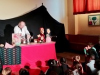Herr Malzacher gestaltete das Märchenstück mit verschiedenen Stimmen und ausdrucksstarker Mimik sehr spannend und humorvoll. Alle Kinder schauten gebannt zu und waren begeistert.