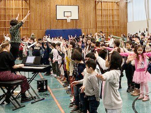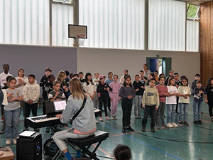 Deshalb haben wir am 03.07.2024 in der Turnhalle ein „Kleines Chorkonzert“ durchgeführt. Die Chorklassen der 3. und 4. Klassen haben einen Ausschnitt aus Ihrem Konzertprogramm vor den 1. und 2. Klassen der Schule präsentiert. Alle haben wunderbar gesungen und es gab reichlich Applaus!