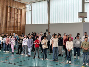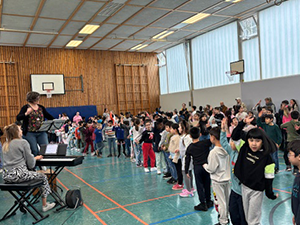 Am 19.03.2024 haben sich alle Kinder und Lehrer unserer Schule zum traditionellen Schulsingen in der Turnhalle getroffen. Mit dem „Dschungellied“, gesungen in verschiedenen Sprachen, ging das gemeinsame Singen los. Auch der Frühling wurde mit dem Lied „Alle Vögel sind schon da“, sogar zweistimmig gesungen, herzlich begrüßt. Alle Kinder und Erwachsenen hatten viel Freude beim gemeinsamen Singen und waren ganz erstaunt, dass alle Kinder unserer Schule so schön zusammen singen können. Wir freuen uns schon auf das nächste Schulsingen im Sommer!