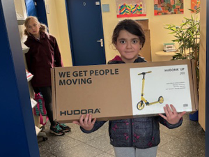 Für jeden Tag innerhalb des Projektzeitraums, an dem die Kinder den Hin- und Rückweg zur Schule zu Fuß zurückgelegt haben, durften die Eltern eine Unterschrift in den Bewegungs-Pass eintragen. Alle Kinder, die 20 Unterschriften gesammelt hatten, nahmen an einem Gewinnspiel teil. Unter den 117 Gewinnspielteilnehmern haben zwei Kinder unserer Schule einen Preis gewonnen, einen Einkaufsgutschein im Wert von 20 € und sogar einen Scooter Roller als Hauptpreis. Herzlichen Glückwunsch!